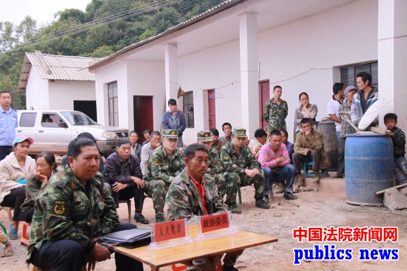 镇康县法院民事审判庭深入辖区南伞镇班龙村和平组开展“阳光司法”巡回审判。张学乔/摄