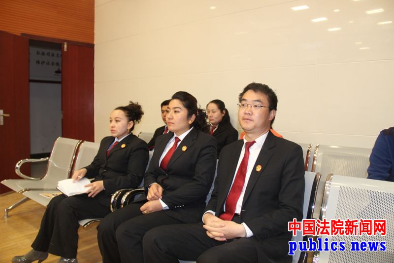 #微博看法官#【王海芸法官的一天】10:30,到达伽师县人民法院后,离开庭还有一段时间。王海芸法官和合议庭成员,做简单休整后穿好法袍,做好庭前各项准备工作,准备开庭。今天审理的案件作为观摩示范庭,伽师县人民法院青年法官到庭观摩。