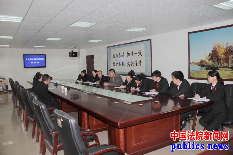 #微博看法官#【王海芸法官的一天】13:30,介绍完经验,王海芸法官又针对合议庭负责制、小额速裁、土地流转等问题进行交流,伽师县人民法院法官纷纷向她提问取经,她也毫无保留的把自己办案的经验介绍给基层法院的法官。