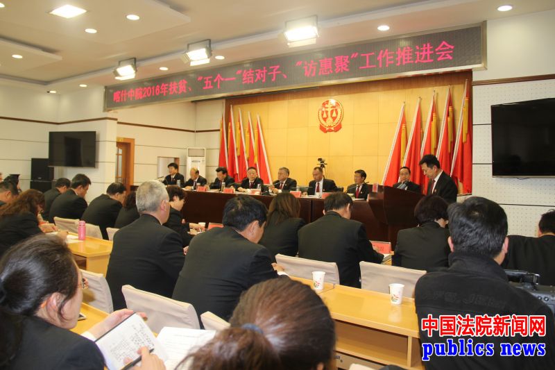 中国法院新闻讯(王伯明 贺双龙)4月1日,喀什中院召开第一季度“访惠聚”、脱贫攻坚、“五个一”结对子工作推进会,采取“一个季度一推进”的方式督促落实三项重点工作。
