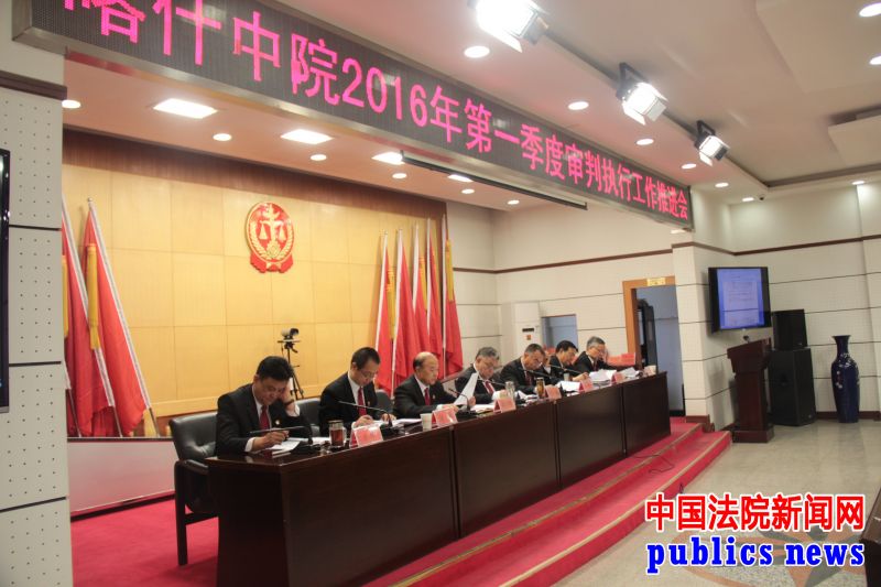 党组成员、副院长蒲光明汇报了第一季度执法办案工作完成情况、审判质效评估和绩效考核反映出工作短板、下阶段整改要求三个方面工作情况,对中院2016年第一季度审判执行工作完成情况进行了总结通报。