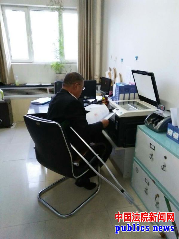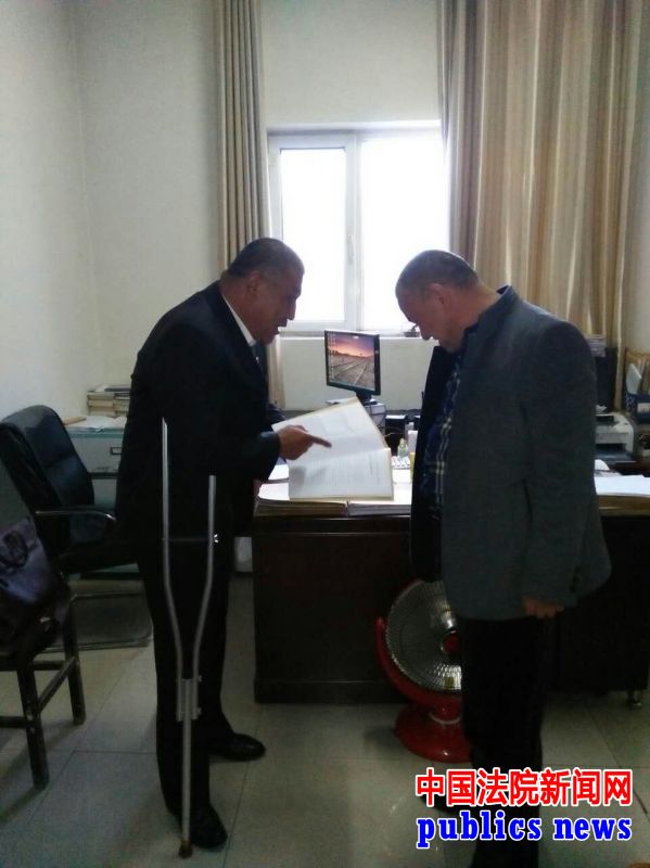 中国法院新闻讯(热依汉古丽)2016年4月8日,木垒县法院执行局办公室出现了感人的一幕:执行局副局长塔依尔江拄着拐杖给当事人细致释法。
