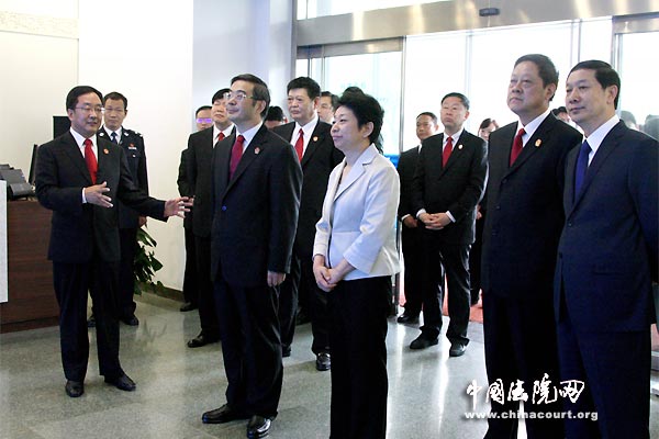 图为周强在南京市中级人民法院调研诉讼服务工作。张明远摄