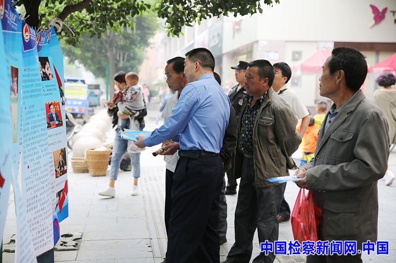 三穗县人民检察院检察官向群众介绍民生资金保护专项工作的内容。