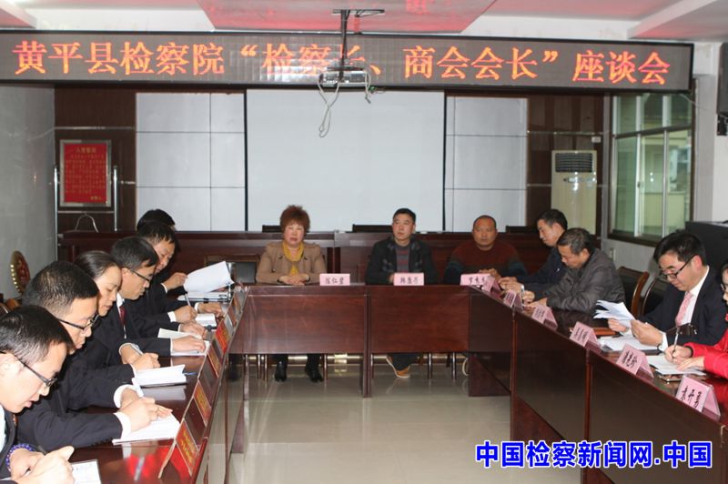 中国检察新闻讯 继2015年召开“检察长、董事长”座谈会,并制定印发《黄平县人民检察院关于充分发挥检察职能服务全县经济发展的意见》后,今年5月31日下午,黄平县检察院又邀请新州商会、湖南商会、福建商会等商会的9名会长、副会长和黄平县农商行董事长、黄平县浪洞森林温泉开发有限公司经理、贵州金佰瑞农业开发有限公司董事长、黄平县绿叶苗木有限公司经理、黄平县富城实业有限公司经理、黄平鑫元甲投资有限责任公司经理等6名企业法人代表到该县检察院召开座谈会,共商非公有制企业发展大计。