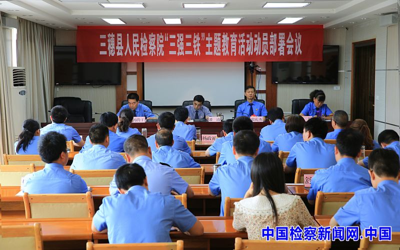中国检察新闻讯(杨政富 杨胜龙)近日,三穗县人民检察院召开全院干警大会,传达学习省委政法委的“强教育、强管理、强监督,做到铁一般忠诚、铁一般法纪、铁一般担当”“三强三铁”学习教育工作会议精神,对该院“三强三铁”学习教育进行动员部署。会议由该院党组成员、副检察长杨腾干同志主持,该院党组书记、检察长潘涛同志作动员讲话。