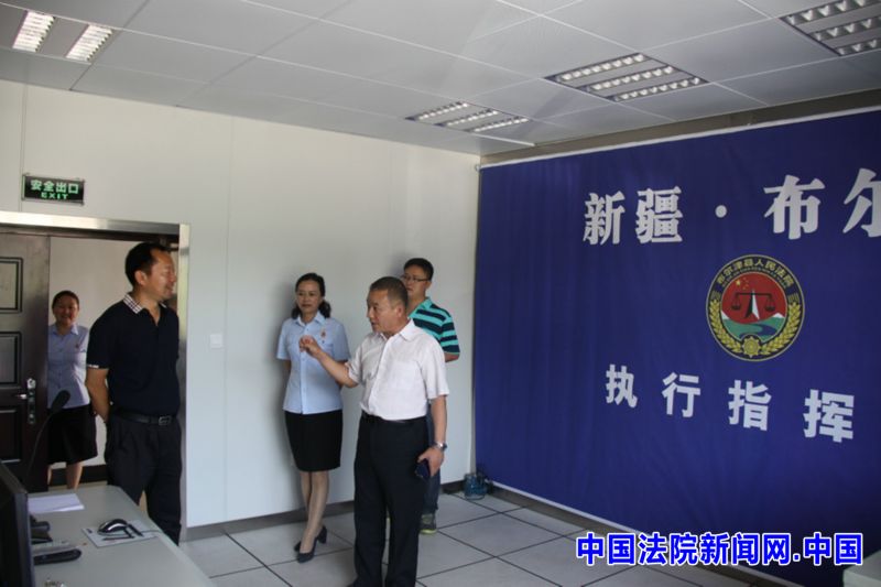 杜新涛书记一行在该院党组书记张孝杨、院长夏帕哈提陪同下实地查看了审判法庭楼扩建项目、诉讼服务中心、科技法庭、荣誉室、图书室、执行指挥室等,听取了布尔津法院立案信访、审判执行、审判管理等工作开展情况,并与法院干警进行了亲切交谈。