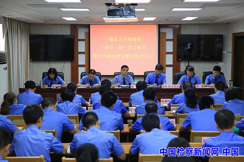 中国检察新闻讯(秦庆平)近日,三穗县人民检察院组织召开“两学一做”学习教育暨党风廉政警示教育会议。全面贯彻落实各级党委和上级检察机关关于“两学一做”学习教育相关会议精神以及中纪委六次全会、省纪委五次全会、州纪委六次全会和县纪委六次全会精神,对该院干警的思想防线和纪律底线进行了有效加强。全院干警共计38人参加会议,会议由党组成员、副检察长翟庆杰同志主持。
