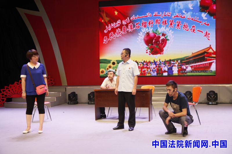 泽普县法院法官用小品《法院开出和谐花》来诠释民族团结是新疆各族人民的生命线