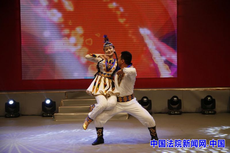 叶城县法院法官表演的维吾尔族舞蹈《高山麦西来甫》节奏明快,热情奔放;