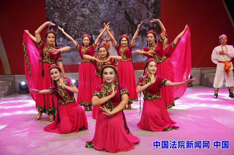 莎车县法院法官用集体舞《木夏吾莱克木卡姆节选》展现维吾尔族人民绚丽多彩的生活;