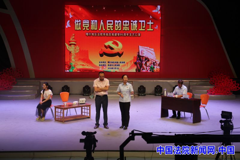 中国法院新闻讯(王伯明 梁晶晶)如火的七月,党旗飘扬,2016年7月1日,喀什地区法院系统庆祝建党九十五周年文艺汇演在地区演播大厅举行。地区人大工委、政协工委、地委组织部、政法委、宣传部、地直机关工委、地区检察院、公安局、司法局、三师中院、地区妇联、民宗委等单位嘉宾,部分基层法院干警代表受邀观看了文艺汇演。各县市法院根据本县地域文化特点,编排了具有独特民族风情的歌舞。