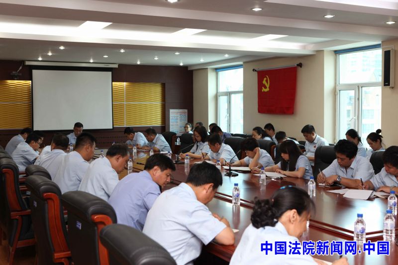 邢吉安院长为院机关全体党员法官干警讲党课。