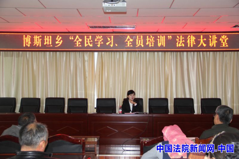 中国法院新闻讯(李金汝)2016年11月17日上午,新疆木垒县法院副院长徐新红受邀为木垒县博斯坦乡“全民学习、全员培训”法律大讲堂活动授课。该乡乡镇干部、村干部、昌吉州林业局住村工作组、村民代表40余人旁听了讲座。