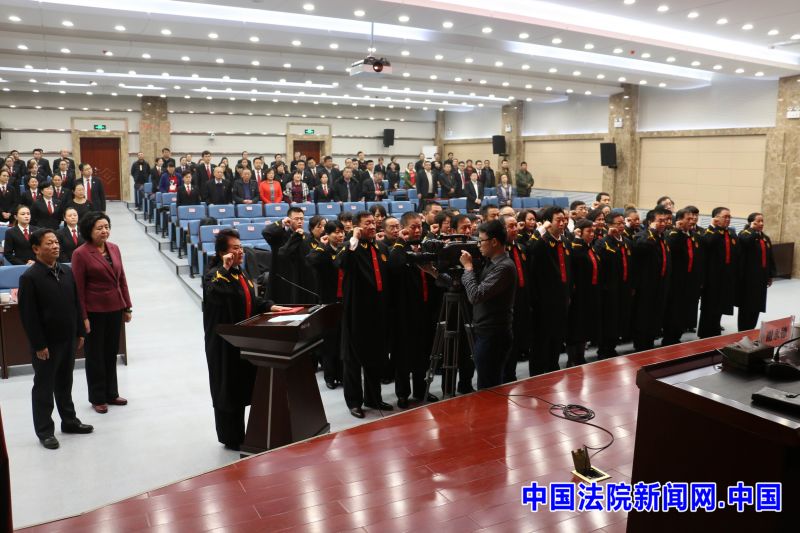 “我宣誓:忠于祖国,忠于人民,忠于宪法和法律,忠实履行法官职责……为维护社会公平正义而奋斗!”