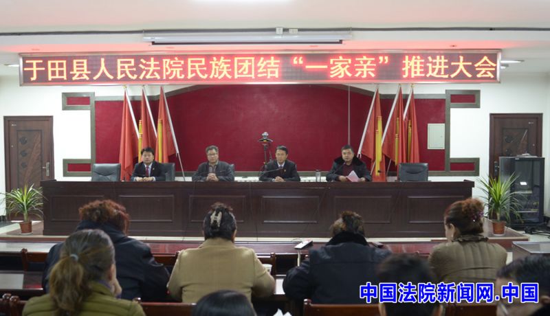 中国法院新闻讯(侯芳)民族团结是全国各族人民的生命线, “民族团结一家亲”活动采取结对子、勤走访、相互学、多活动、真帮扶、重激励等活动载体,扎实推进,深入开展。近日,于田县人民法院召开“民族团结一家亲”推进会,对“民族团结一家亲”活动结对认亲工作进行再推进、再落实。