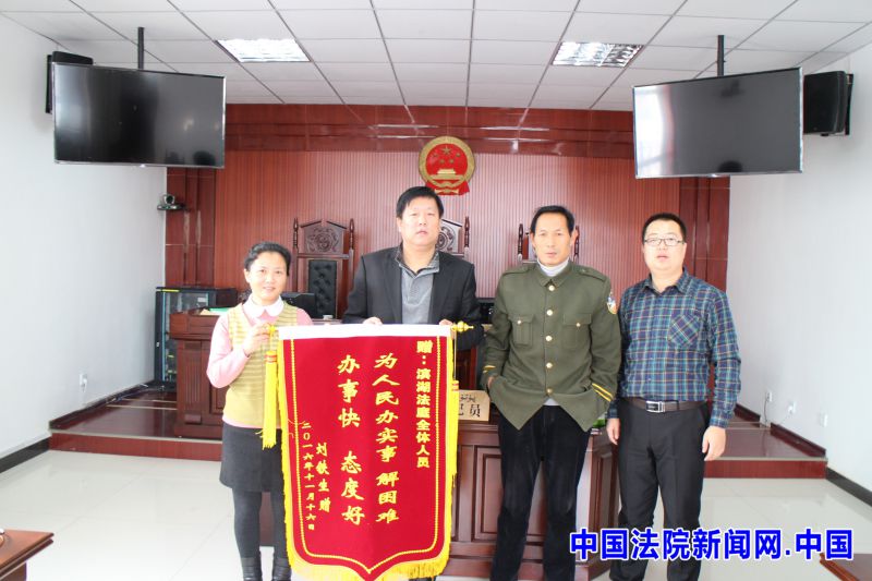 中国法院新闻讯(刘玉超)十冬腊月天,天气变得更加严寒起来,天空中飘扬着纷纷洒洒的雪花,好一片冬日气象。在欣赏雪景之时,一个穿着单薄的中年人走进了滨湖法庭,刚一见到滨湖法庭的法官,他忙不迭的送上锦旗,嘴里不停的重复着“谢谢法官,谢谢滨湖法庭。”